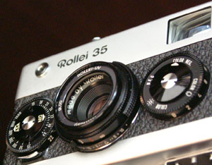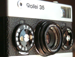 今回、登場してもらうカメラは「ローライ35」。1966年にドイツで開発された、コンパクトカメラの元祖と呼ばれるカメラです。絞りとシャッタースピードのダイヤルが前面に配置され、ボディのまわりに突起物がほとんどない、完璧とも言える「箱型」のデザインが特徴。車に例えればミニクーパーのように、小さなボディにギュッと機能を凝縮した雰囲気を漂わせます。コンパクト設計とは言え、重量が手にずっしりくるのは、この時代の金属素材ならではのご愛嬌。こう見えて、ハーフサイズではなく、35ミリフィルムのフルサイズ仕様。レンズは、40ミリF3.5で、なんと高画質で有名なカールツァイス製です。