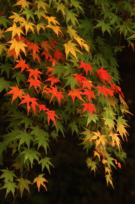 色づきはじめたばかりの葉は、クローズアップで狙うと、色彩感が引き立ちます。