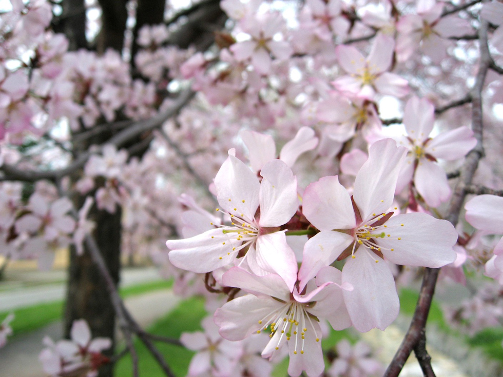 そんな制約がある中で、桜を美しく撮影するには、花の咲き具合だけでなく、光の向きや強さ、あるいは当たり方をよく観察して撮る必要があります。桜の咲いている枝の広がりを見せるなら、晴れた日の青空をバックに選び、順光で撮影すれば、オートでも失敗は少ないようです。また、いわゆる「花ぐもり」の日に、日なたと日陰の輝度差がない状態で、花のアップを狙えば、本来のピンク色を再現しやすくなると思われます。ただし、曇りの日には、空が白色になるので、背景を広く取り込むなら、露出アンダーに注意が必要です。