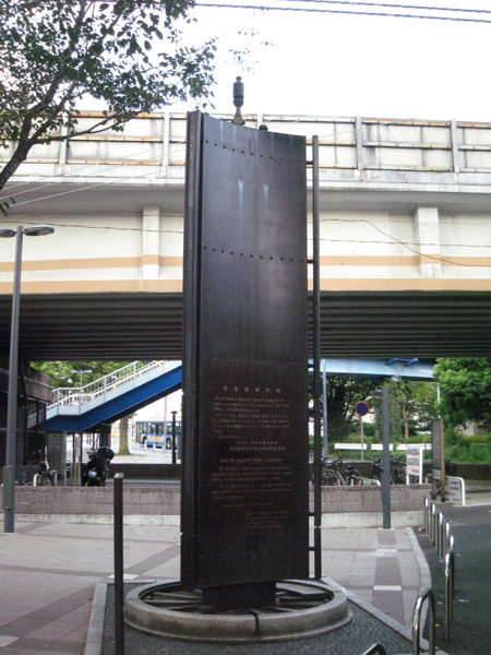 起点の新橋ステイションに対して、当時の鉄道で終点となったのが、「横浜ステイション」。こちらの跡地は、新橋側ほどには豪華な史跡とはなっていませんが、当時の駅舎の位置を示す記念碑が立っています。場所は、現在のJR横浜駅ではなくて、1つ先の桜木町駅の近くです。記念碑は、駅構内ではなく道路上にあるので、切符を買わなくても見学することができます。