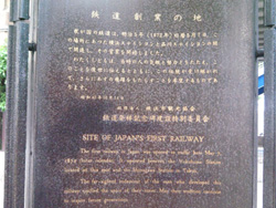 さて、横浜ステイション跡にある記念碑の説明をよく見ると、開業の日付が、旧暦の5月7日、区間が横浜と品川の間と書かれています。新橋ではなく、横浜を先に起点として説明し、最初の開業区間も、新橋ではなくて、品川までとなっているところに注目してください。