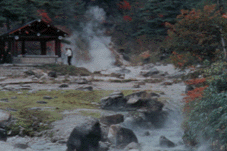 *西の河原公園=いたるところに温泉が湧きだし、一筋の湯川となって流れている風景は、被写体として珍しいといえます。大露天風呂もあって、疲れた体を癒してくれます。
