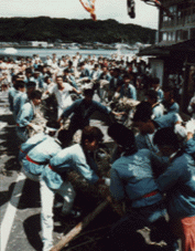 多くの人達が遊べる“綱引き”どちらにも勝たせたいですね。ましてお祭で吉凶を占うとなれば、お互い真剣にならざるを得ません。玄界灘に面し、東松浦半島の突端に位置する佐賀県呼子町。ここで毎年、“呼子大綱引”が6月の第一土、日曜日(今年は6月7~8日)に行なわれています。岡組と浜組に分かれて行なわれます。岡組が勝つとお米の豊作、浜組が勝つと大漁、あなたは岡派?それとも浜派?、いずれにも勝たせたい綱引きです。