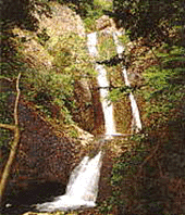 *鶴ヶ滝=しぶきをあげる二筋の滝の姿があたかも鶴を思わせるように白く清美であることから鶴ヶ滝と名付けられたとか。春の若葉、夏の清流、秋の紅葉と四季折々に美しい。温泉街から若干離れて、山中バスターミナル、車で10分の所です。