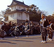 祭の撮影では表情豊かな子供を被写体におさめるのもひとつのポイントですが、この義士祭は多くの子供が参加しますので、シャッターチャンスにこと欠きません。赤穂城をバックにしてのこれら行列などの撮影は“絵”になるとして、多くのカメラマンが押しかけます。本格的に撮影をするつもりであれば、早めに場所の確保が必要なようです。