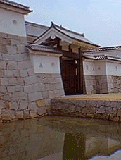 *赤穂城跡 海に面し、海岸平城で天守台が現存していますが、大手門や櫓、城壁の一部は復元されたものです。