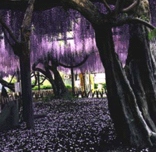 藤の花にも何種類かあります。大別しますとと右巻きのフジ(長藤)と左巻きのヤマフジ(花美短藤)とに分けられ、花房の長さ、花色で分類されています。ヤマフジ、ナガフジ(紫)、ナガフジ(白)などが代表的です。さらにこの藤は長寿で1000年以上の古木もあり、それだけにいわれや由緒のある藤が各地に散在しています。ロマンと歴史を感じさせる花でもあるわけです。国、県、市町村の指定天然記念物も多々あります。