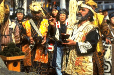 北海道ではこの紅葉の見頃の時期、10月8~10日に阿寒湖畔で「まりもまつり」が行われます。この「まもりまつり」はもともとは、まりもの保護を願って昭和25年に始まった行事ですが、アイヌの人達の民族舞踊や民族衣装を着て丸太舟を漕ぐ姿が見られることから、北海道を代表する行事のひとつとして数えられるようになって、今年で49回目を迎えています。