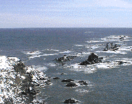 東から押し寄せる波に強い西風が当たって、しぶきとなり、波がしらに虹ができるこの現象は冬の景物になっています。写真で表現できにくい、この虹と冬の風に一度チャレンジしてみてはいかがでしょう。