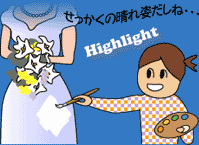 | こちらは本番の撮影でうまく撮れなかったとき、パソコンのレタッチソフト上できれいに補正しちゃおうというレタッチお助け隊。Let'sフォト美の妹である私、フォト絵が担当します。どうぞよろしくね!さて、「デジカメ機能撮影」ではバッチリ成功したようですが、フォト美ったらその後の二次会では気がゆるんだようであまりうまく撮れなかったみたい...。そこで私がレタッチ術でお助けすることに。 | ||