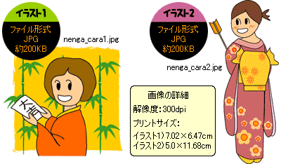 | 今回は、そのまま年賀状としてプリントして使える年賀状画像と、フォト美&フォト絵のオリジナルイラストを、おまけで差し上げます。 よろしければ、あなたの年賀状作成にお役立てください。使い方は、以下のとおりです。とくに、年賀状画像はハガキにプリントする最適なサイズになっていますので、そのままネットポストカードでご注文いただくこともできますよ。 |
