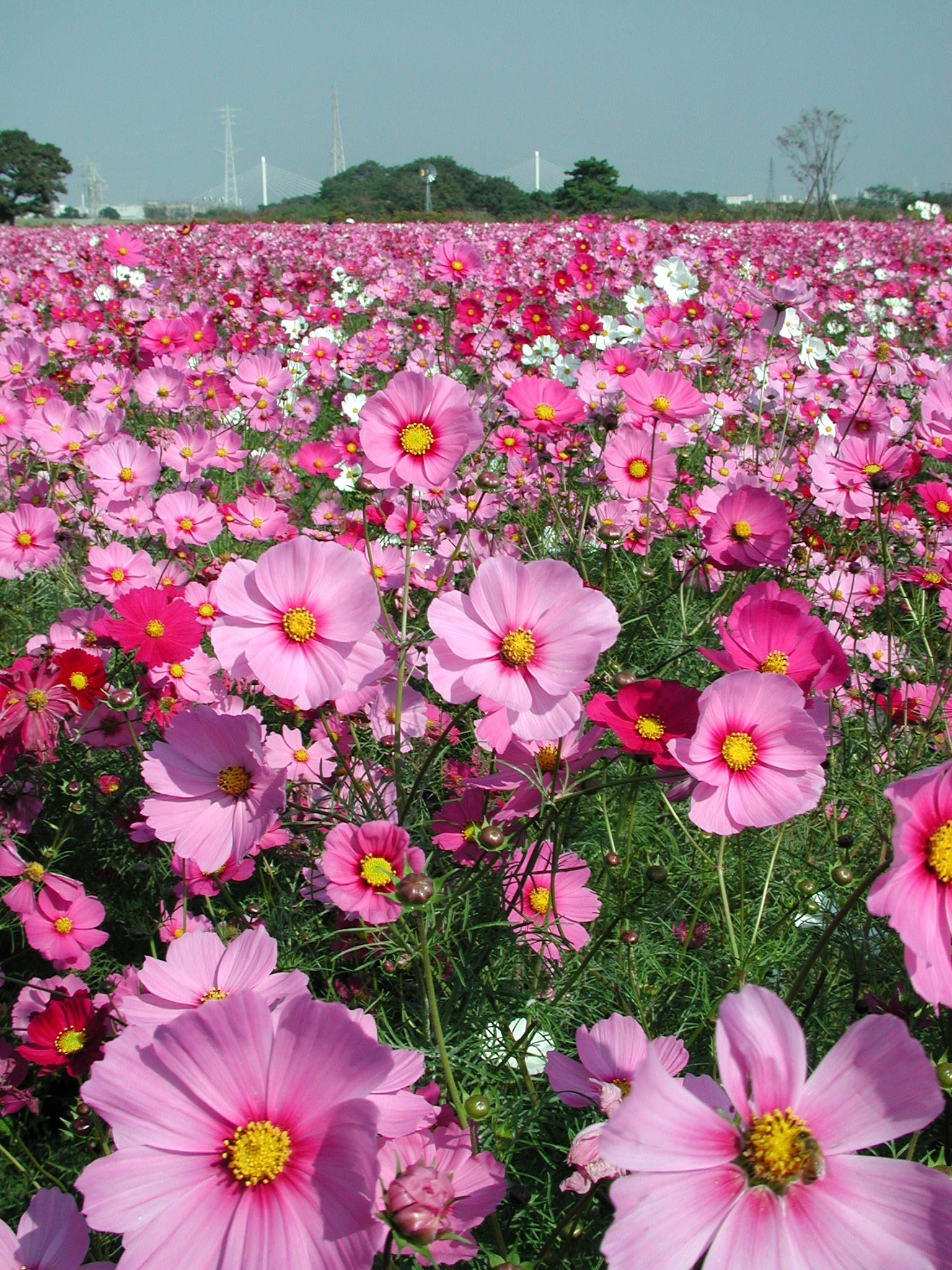 うわぁ、絶景のコスモスですね!一体、どこに行けばこのような景色を目にできるのでしょうか?うらやましい限りです。