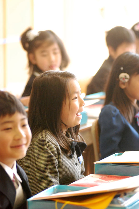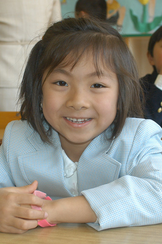 列のほぼ真横から撮っているため、子どもがイスの背もたれによりかかっていると手前の子どもの陰に隠れてしまいます。そこで子供が少し身を乗り出したときに撮りました。