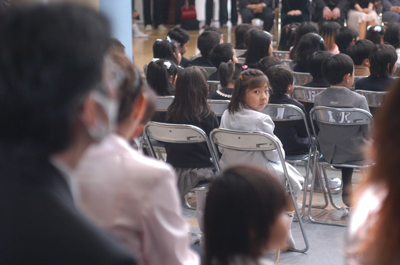 入学式の式典の最中で近づいてアップにすることはできないが、ちょっと緊張した表情をとらえたかったので望遠でアップにした。