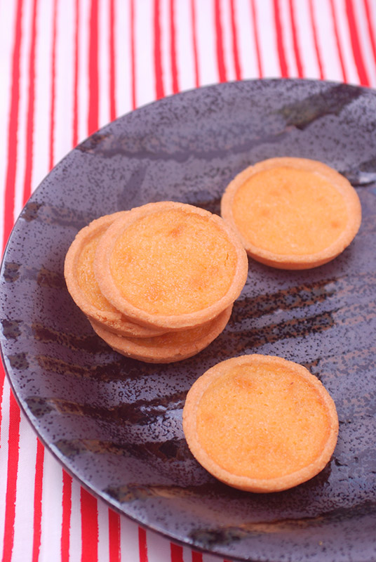 色が単純なお菓子は、カラフルな布を敷いて画面に色を添えると華やかさが増す。このとき、色をたくさん入れすぎないように注意する。