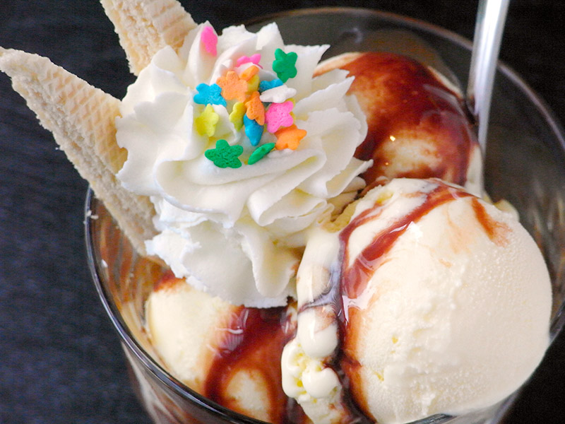 スイーツのようにディテールが細かいものは、ポイント部分をアップで撮影する。こうすることで、生クリームやトッピングでデコレーションされた部分がより引き立つ。