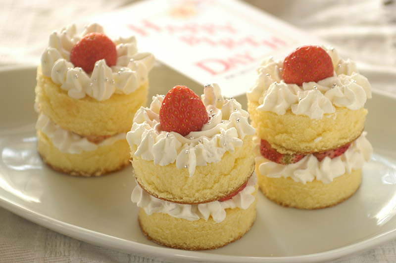 スイーツ写真は見た目の美しさも味わいのひとつなので、できるだけ見た目どおりに写るようにしたい。作例のような白いケーキは露出補正なしで撮ると暗く写るので、露出をプラスにして見た目どおりの明るさに調整する。