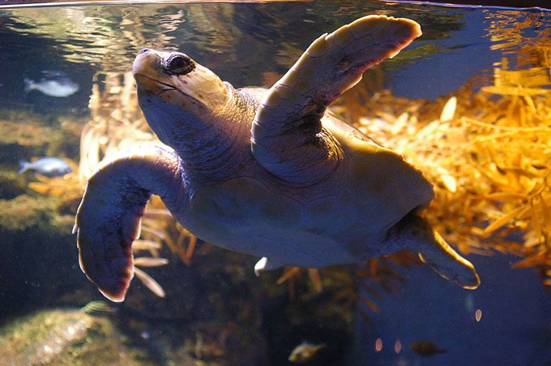 館内がいくら暗いとはいえ、ストロボを使えば水槽に反射してしまう。水族館ではストロボは使わずに撮ろう。ストロボを使わずに感度を高くすると、見た目通りの写真が撮れる。