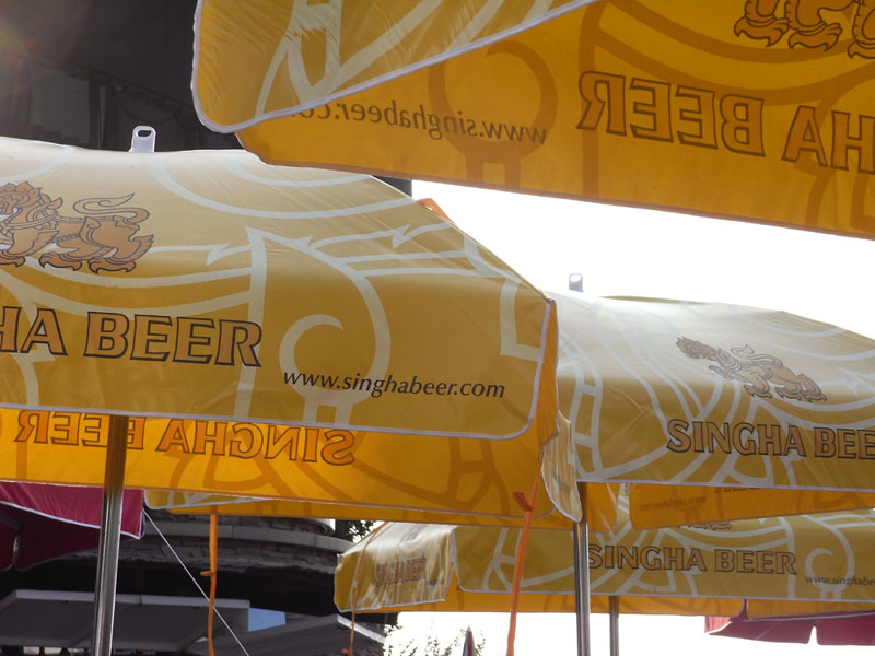 オープンカフェのパラソルを互い違いに見えるアングルからアップで切り出し、パラソルの黄色とジグザグのラインを主役にした。単体では主役として弱いものは、一部を切り出して並べると強い主張を持つ。