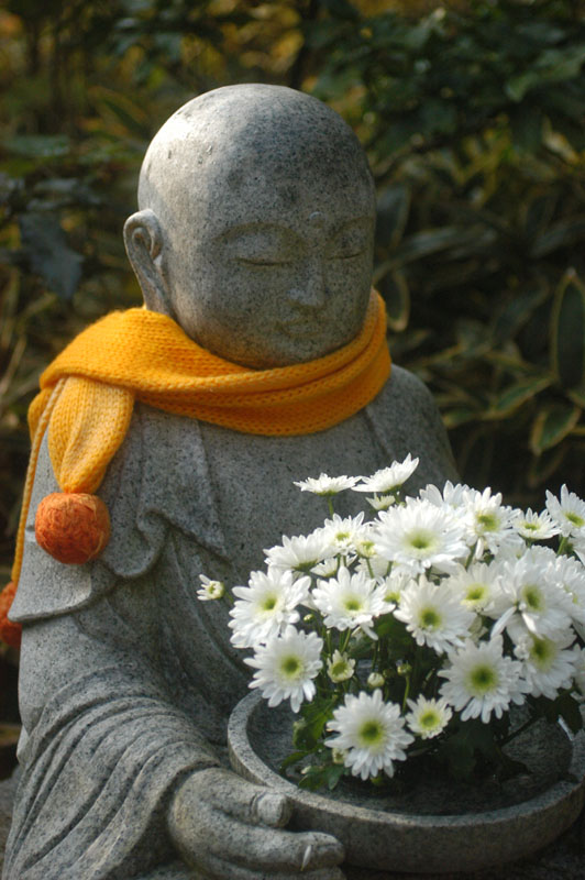 ポイントのマフラーと菊を 強調するために上半身で切る