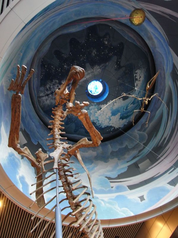 前後のものを画面にいれると奥行きが出る。手前の恐竜の頭を見上げるようにしたことで迫力がプラスされる。