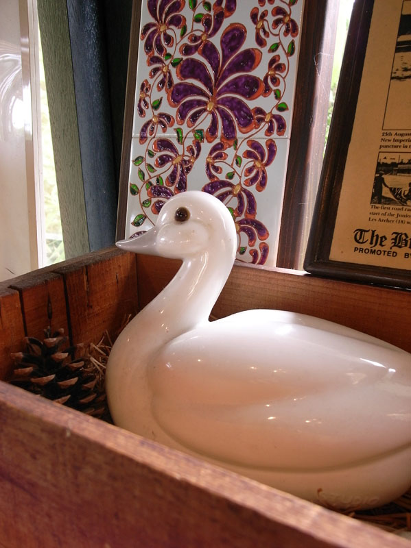 アヒルのつるっとした質感を出したかったので窓際の逆光で撮影した。逆光でできる明暗で、光沢や丸みが表現された。