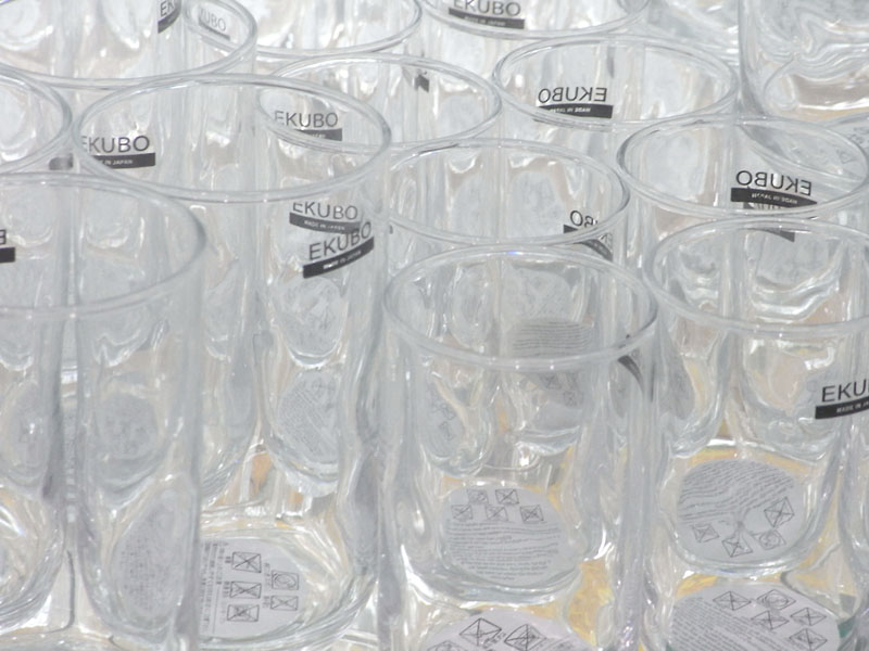 お店のウィンドウで見かけたグラスの集合を撮影した。画面全体にグラスを入れ、四方を切り取ることで、無限の個数を連想させることができる。
