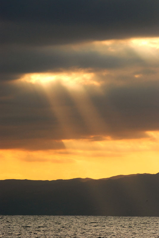 雲の切れ間から差し込む光は縦位置で大きく取り込む