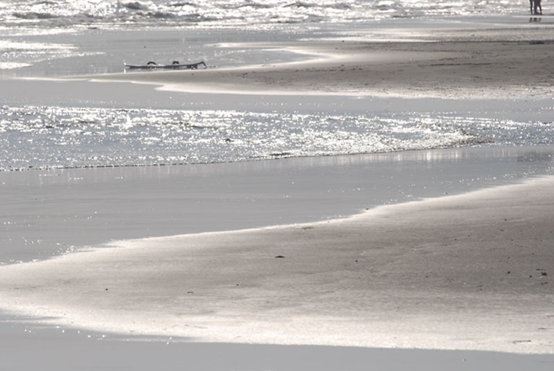 シャッターチャンスは一期一会。出会ったときに逃さないよう常に心構えしておこう。ここでは、望遠レンズで寄せてくるさざ波の重なりを切り取り、横のラインが並んだパターン構図でまとめた。