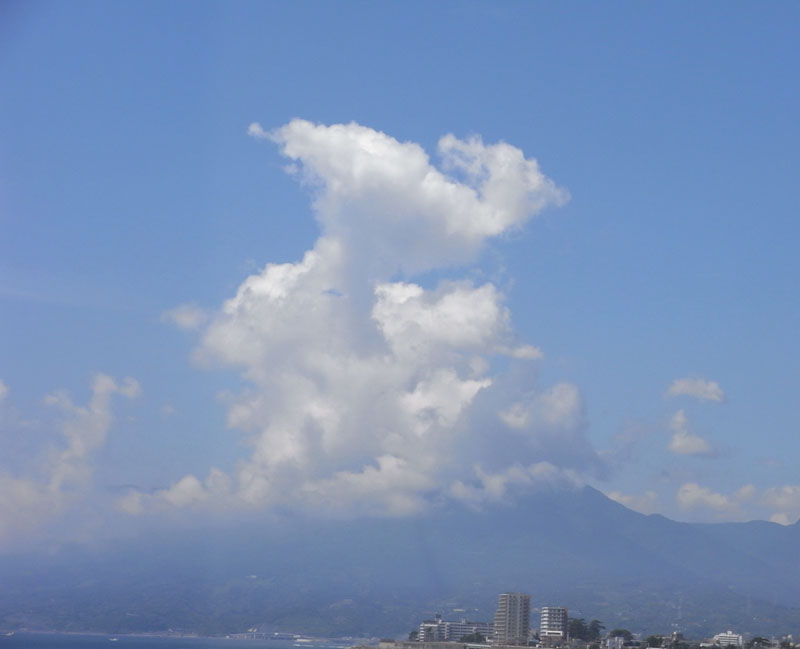 パラソルとの対比で雲の大きさを表現
