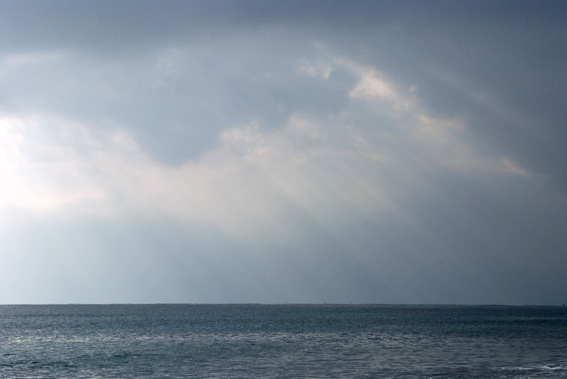 晴天の午後、上空の風は強かったようで、流れも速かったがあっというまに雲のかたちも変わっていく。雲のかたまりがパラソルの上を通るときを狙って撮影。