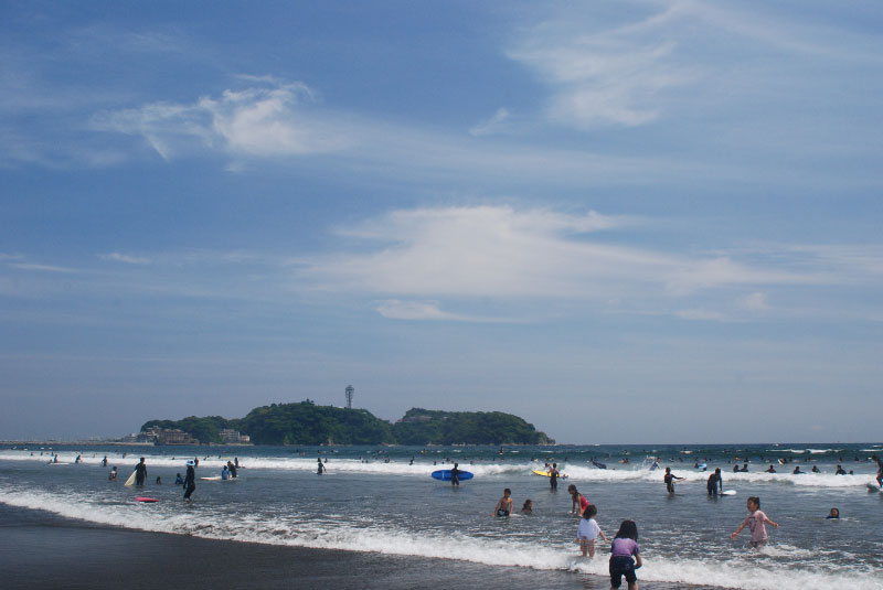 この作例ではパラソルは脇役になっているが、立ったままのアングルから撮るとパラソルが地平線の下になってしまい、ただでさえ小さいパラソルの存在感が薄くなる。そこで地上30センチくらいの高さにカメラを構え、パラソルが地平線の上に出るように撮った。