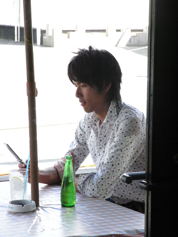 露出をプラス補正することで、背景が極端に明るい場所でも、人物が黒くつぶれない。