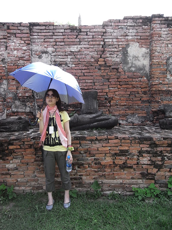 人物を画面いっぱいに写すのではなく、あえて後ろのレンガの壁や仏像を入れるスペースを作り、その場の雰囲気を写し込んだ。人物を中心からはずすことで背景にも存在感が出た。