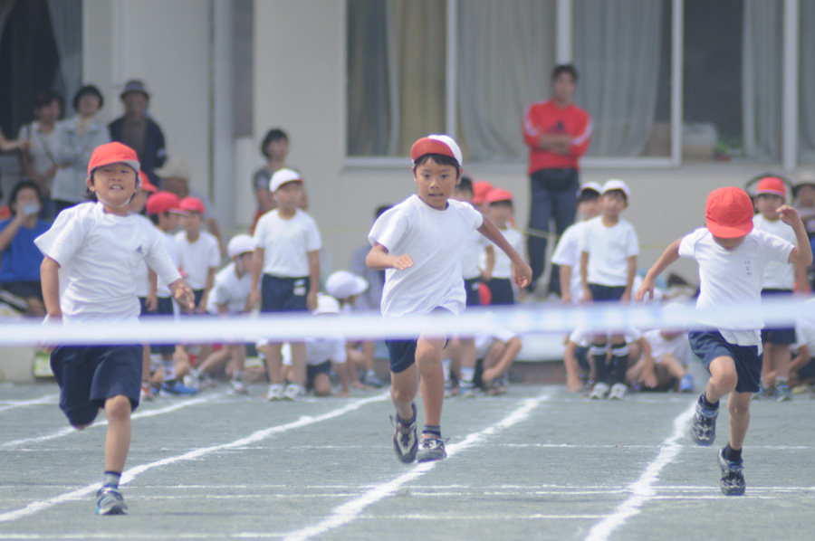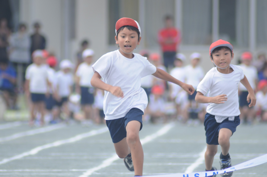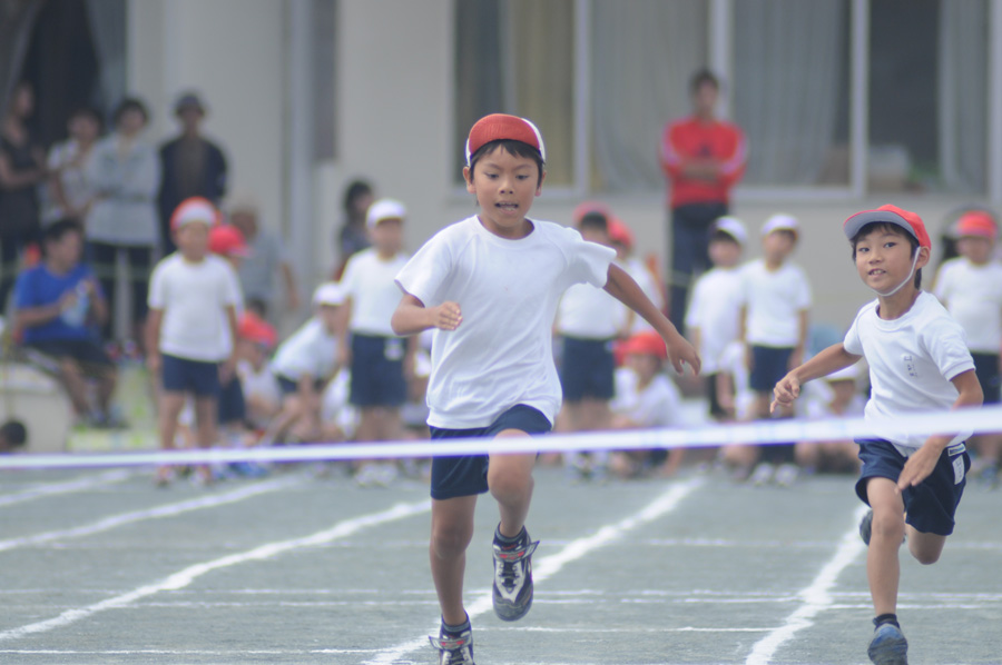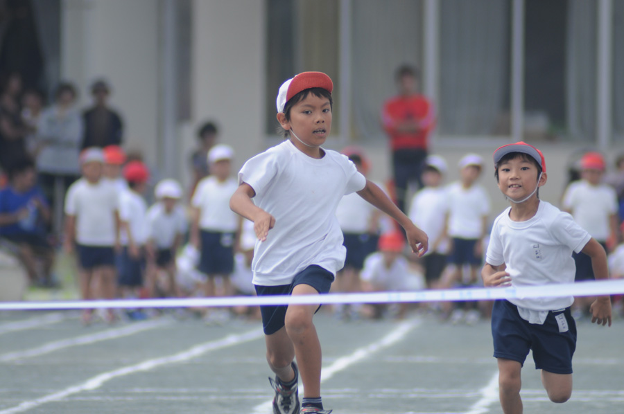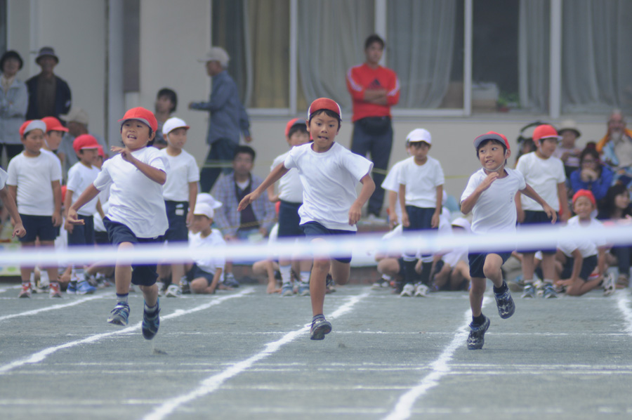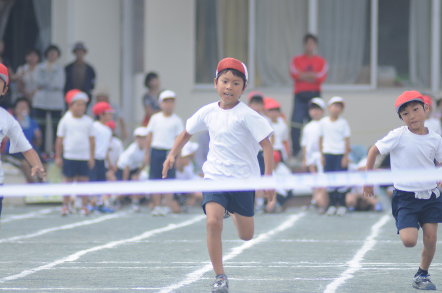 スポーツや動物など、動いているものを撮るにはAF-Cです。作例(3)のような運動会では走っている子供にピントを合わせるにはこのモードが最適です。このAF-Cはシャッターを半押ししている間はAFフレームに重なっている被写体のピントを追い続けてくれます。AF-Sの場合はカメラが「ピントが合った」と思った瞬間にAFロックが働いてピント合わせをやめてしまいますから、どんどん走ってくる子供をそのまま撮ったらピンボケになってしまいます。コンティニュアスAFではAFロックは働きません。一度ピントが合ったら被写体の動きに合わせてピントを追い続けます。スポーツの写真などにはぜったいこちらがお勧めです。