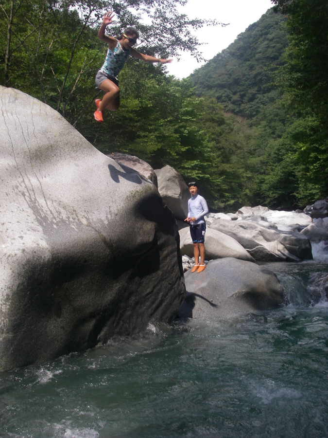 子供はこういう遊びが大好きです。飛び込みの瞬間を撮るなら離陸直後を狙いましょう。