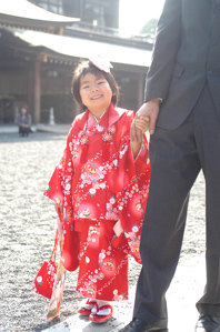 作例(1)このときお勧めは逆光で撮ることと背景になるべく人が入らない場所を選ぶことです。山岡は過去に何回も七五三の写真を撮りました(自分の子供プラス子供のお友達)が、何が大変かと言うと邪魔な人ごみをカットするのが一番大変だった!と言うのが正直な感想だったからです。