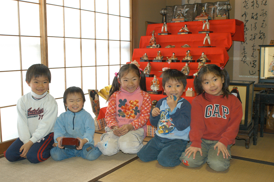 集合写真の場合は横に人が並んでいる状態なら、画面いっぱいになるくらいの大きさか、「両脇にもう一人くらい入れる」程度のスペースがあれば十分です。作例(1)は広角で撮っていることもあり、両脇もあきすぎですが手前のなにもない畳スペースもあきすぎです。