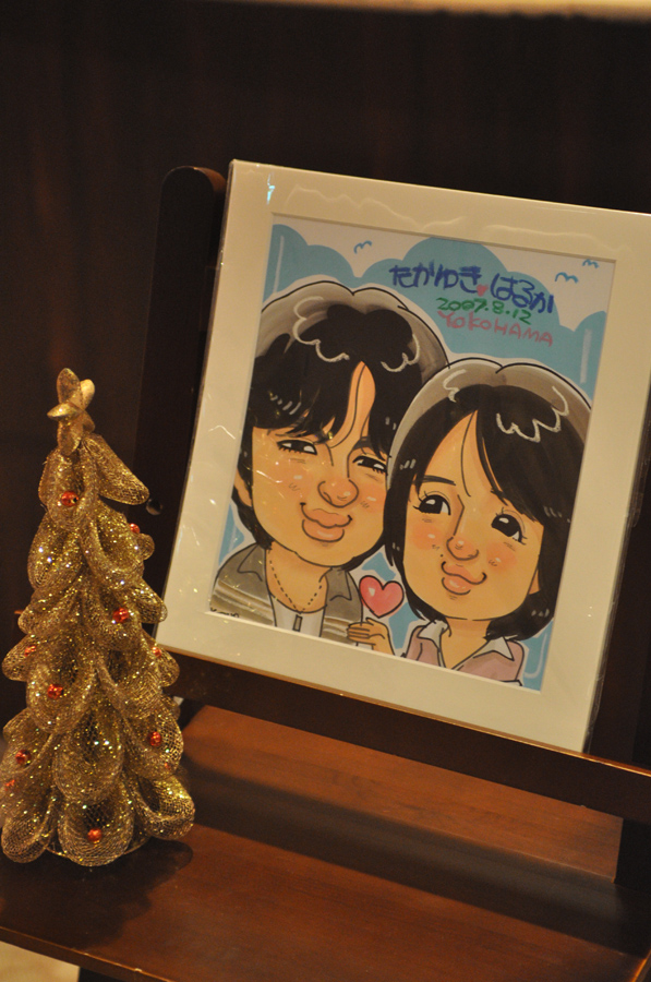 ウェルカムボードなどの小物もイメージカットの素材にはちょうどいいでしょう。こういったボードなどは真正面から四角く撮ってしまうより斜めから角度をつけて撮ったほうがイメージっぽい仕上がりになります[作例(4)]。記録として残すために撮るなら正面から文字の一つ一つまで読めるように撮るべきですがここはイメージカットとして使いたい場合ですので読めるのは新郎新婦の名前くらいでOKです。そばに飾られた小物や花などをあしらって撮るのもいいでしょう。