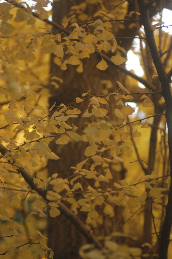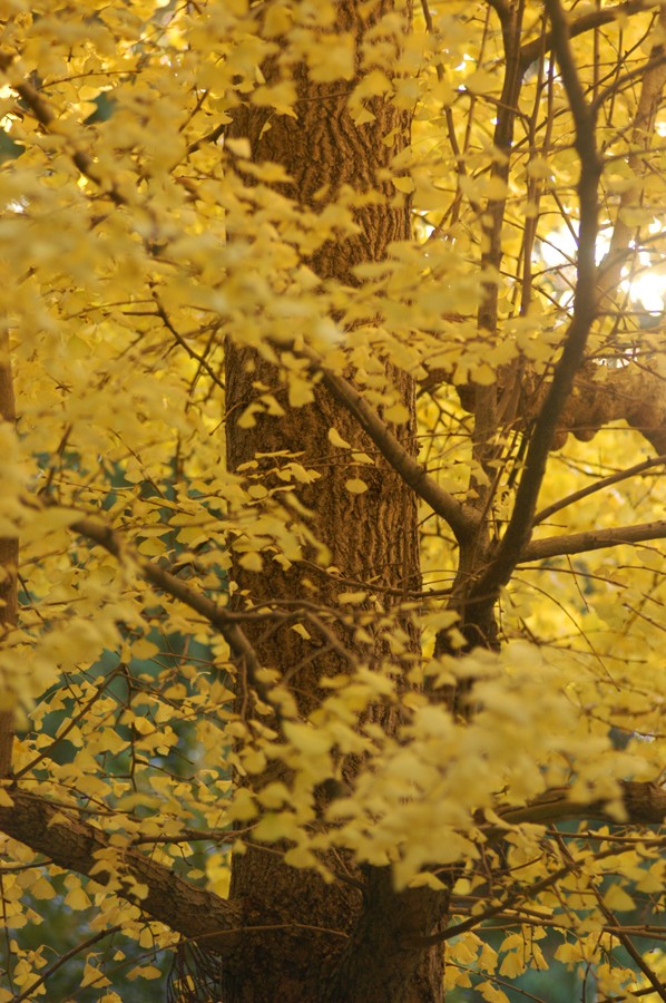 昨年、赤いカエデの枝を撮った作例でマイナス補正の作例をお見せしました。カエデの赤を深くしっとりした印象に見せるための補正でしたが、イチョウのように黄色く色づく葉の場合はプラス補正が必要です。黄色はかなり明るい色なので、画面内のどれくらいの割合が黄色で埋められているかによって補正幅に差はありますがたいがいの場合はプラス補正しないと黄色がくすんだ色に写ってしまいます。