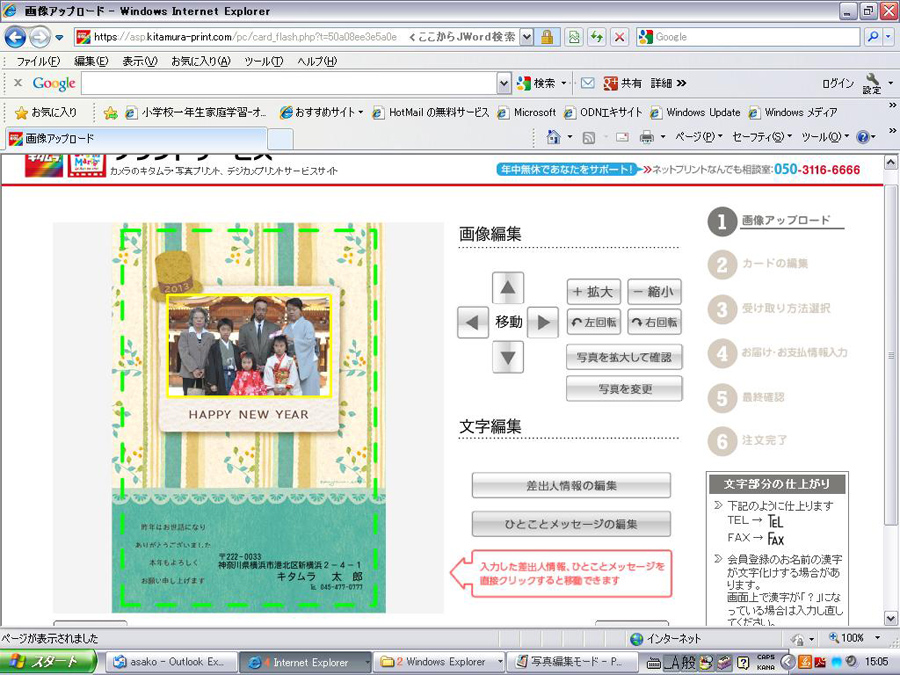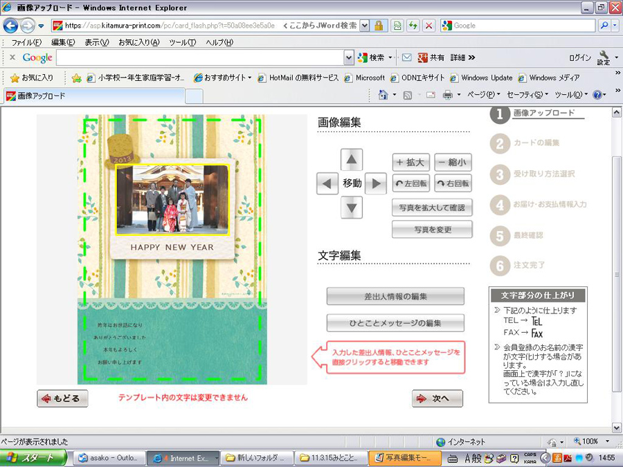 その改善策を紹介しつつ今回はキタムラのテンプレートで年賀状を作ってみました。