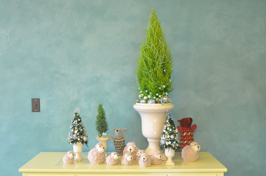 ツリー単体で撮ってもよいのですが、インテリアとして他の小物と一緒に撮るのもいいでしょう。