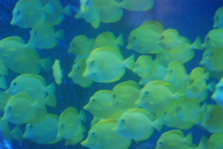 同じようなシャッター速度でも動きの速い活発な魚だとぶれてしまいます。([作例(3)]シャッター速度1/100秒)また、動き回る魚の場合ファインダーで追うのも、ガラスの正面に立って追うのも大変です。ガラスの正面から撮るということは魚の動きに合わせて魚と一緒に自分も移動しなければならないので、水族館がすいているときはいいのですが混雑しているときは大変です。その場の状況などに応じて狙う魚を選びましょう。