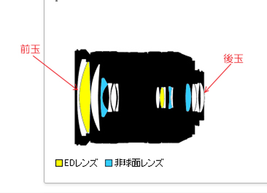 レンズの場合通常一番汚れるのは前玉と言ってレンズの一番前にあるレンズ部分の表面が汚れることが多いので、掃除するときは前玉中心に掃除する方が多いのではないでしょうか。(図4参照)確かに前玉の汚れは目立つので、ここを中心に掃除したくなるのはわかります。しかし実際に写真の写りに影響するのは後玉のほうです。ここが汚れていると写りに大きく影響することがあるので、掃除するときはこちらも忘れずに掃除してください。また、ここにゴミがついているとカメラボディのほうにゴミが入ってしまうこともあります。