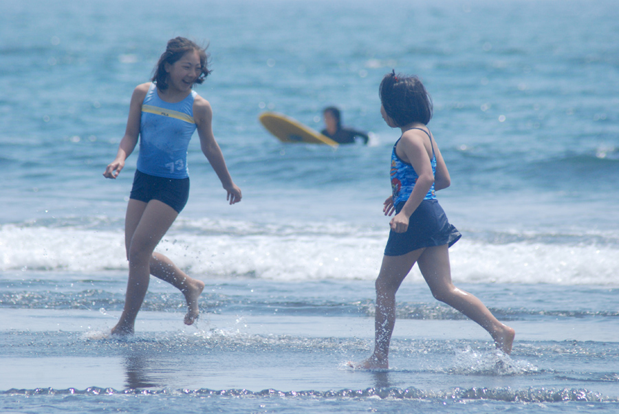自分の子供なのにコソコソ気づかれないように撮る、なんて情けない、と思われそうですが、嫌がる子供を無理に撮ろうとしてはいけません。子供に我慢して突き合わせるくらいなら親が我慢してコソコソ撮りましょう。遊んでいるときや[作例(1)]、何かの発表の場でもスポーツ中でもいいと思います。とりあえずは望遠で遠くから撮ってみましょう。撮られるのが苦手な子は広角で近くから迫られるとそれだけでプレッシャーを感じます。遠くからならそれほど抵抗がありませんし、お嬢さんが慣れてくれるまでちょっと望遠で頑張ってみてください。このとき必ず「決まった」と思えるカットが撮れるまで粘ってください。そして撮った写真(かわいいやつをですよ)は必ずモニターなどでお嬢さんに見せてあげてください。「パパならかわいく撮ってくれる」という信頼を得るまでがんばりましょう。