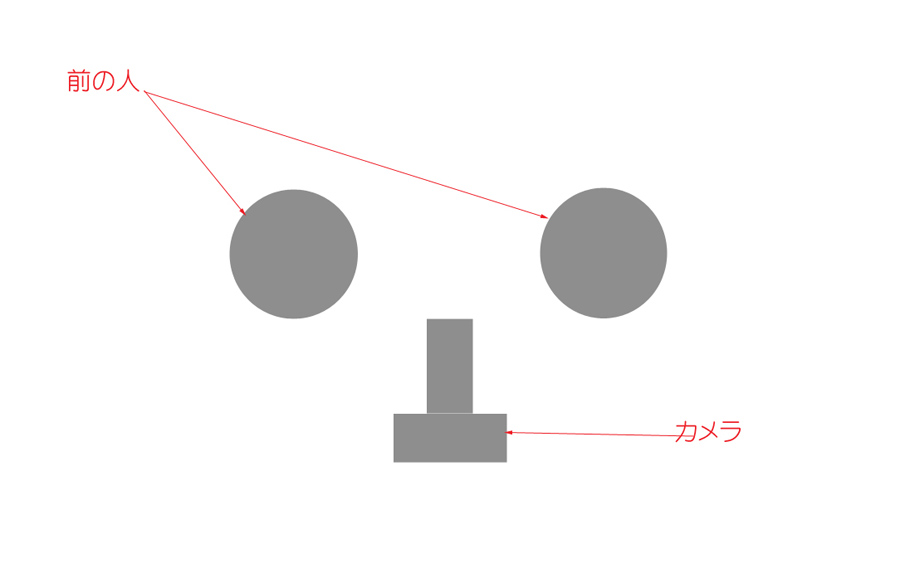 こんな時は図Aのように前の人の頭の間から撮ると少しは撮りやすくなります。前の人の頭の間から撮ったのが作例2です。画面左右下にやっぱり頭が入っていますが、作例1よりはだいぶましな感じになりました。完全に前の人の間にレンズを出して撮ればこの黒い影も切ることができますが、そうするとレンズを左右に振ったときに前の人の側頭部にレンズがぶつかることも考えられますので、十分注意しましょう。作例3のように上半身のアップにすれば邪魔な影も入りません。この時は200ミリの望遠で撮りました。これくらいの望遠があれば子どもの楽しそうな表情もアップで撮ることができます。