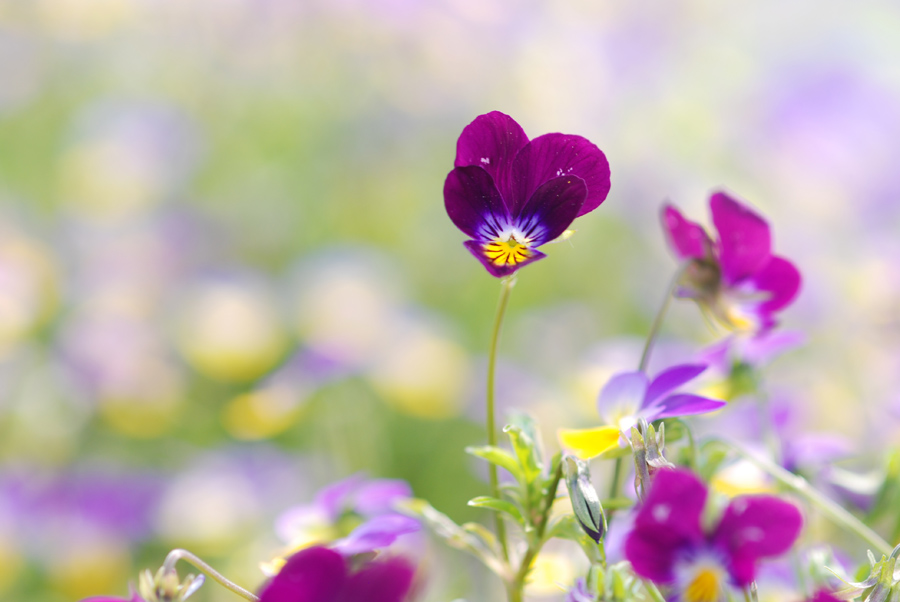 春になるといろいろな花が咲き、花の写真が撮りたくなります。花は散ってしまうものですから一番きれいな時に撮らないと、来年まで撮れない、ということになってしまいます。今回はビオラを撮ってみました。公園の花壇やガーデニングでおなじみの花ですが、あまり派手な印象の花ではないためか撮っている人は少ないようです。でもよく見るととてもユニークでかわいらしい形の花です。この花のかわいらしい感じを撮りたい、と思いいろいろやってみたのでそのときのお話を紹介します。