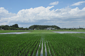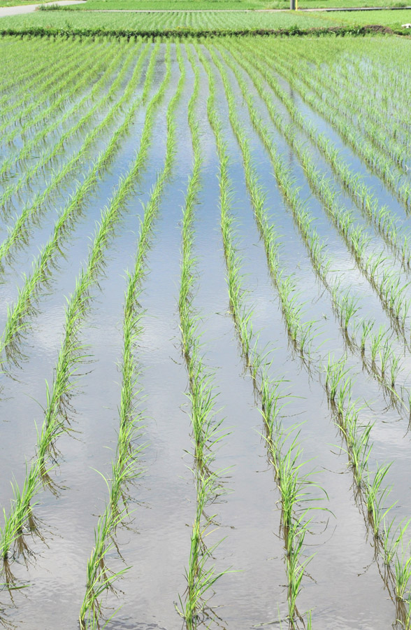 うちの近所にはちょっと足を延ばせば「なんてのどかな!」と言いたくなる場所がたくさんあります。里山っぽいとでも言えばいいのでしょうか。若い頃、会社勤めをしていたころは都内に住んだこともありましたが、やっぱり地元のちょっと地方感があるところが私は好きです。わりと最近作られた住宅地なので周りには気軽に楽しめるくらいの手ごろな自然が残っています。子供たちの送り迎えで毎日通っていた道の横に広い田んぼが広がっています。農業については詳しくわからないのですがちょうど今ぐらいが田植えの時期らしく田んぼに水が張られ、青い苗が並んだ姿は爽やかです。今回は田んぼの風景を撮ってみました。
