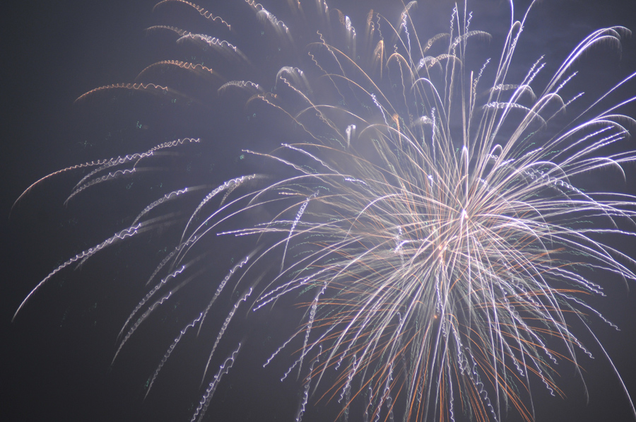 花火の写真は夜の撮影になります。夜空に鮮やかな火花が散る様子を写真に撮るので暗い夜空と花火のコントラストが強いほうがきれいに見えます。理屈から言えば夜空は黒く写るのでそこに花火を写しこめばいいということになります。しかし、天候によってはわずかに霞んでいるときなど、花火の光が逆光になって空が黒く写らず、ぼんやりしてしまうことがあります。また、天気は良くても風下にいたりすると花火の煙が花火と重なってしまって花火がきれいに見えないこともあります。気象条件などは選べるものではないのでどうにもならない場合もあるのですが、撮った後で写真に手を加えることでそのまま見るよりきれいな印象の写真にすることもできます。