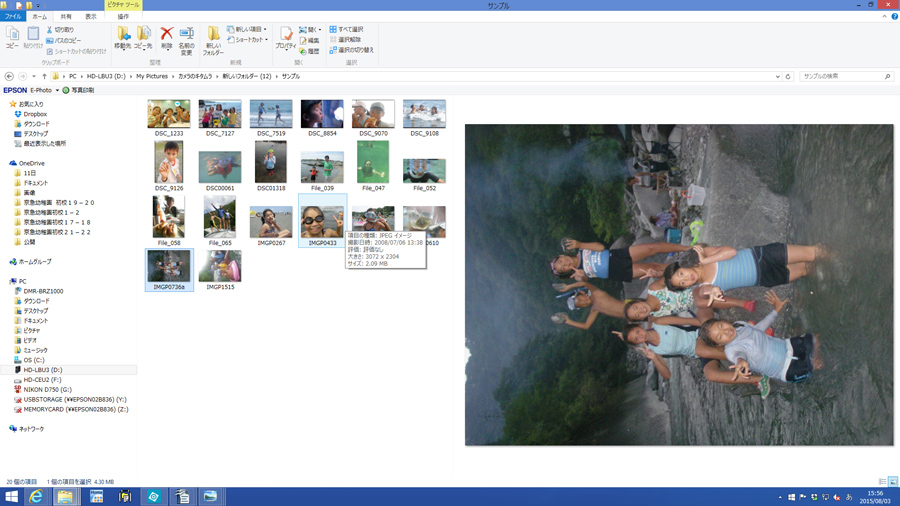 レイアウトを選んで17カットの写真が必要、と決まったので、テーマに合わせて17カットの写真を選んで一つのフォルダにまとめます。写真を選択する画面でバラバラのフォルダから写真を選ぶこともできるのですが、一つのフォルダにまとめておいたほうが後で編集するときに断然楽です。面倒でも一つのフォルダにまとめておくことをお勧めします(写真2)。